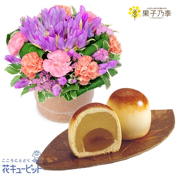 NO.1 リンドウのアレンジ(ピンク)と【果子乃季】栗ほまれ 6個入