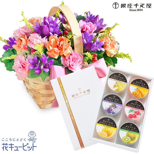 NO.3 リンドウのウッドバスケットと【銀座千疋屋】銀座ゼリー 6個入