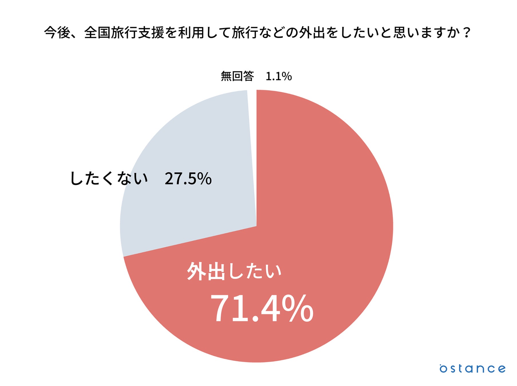 3月に実施したマスク解禁についてのアンケートでは、今後の外出について、「今後、全国旅行支援を利用して旅行などの外出をしたいと思いますか」の問いに、71.4%のシニアが「外出したい」と回答。