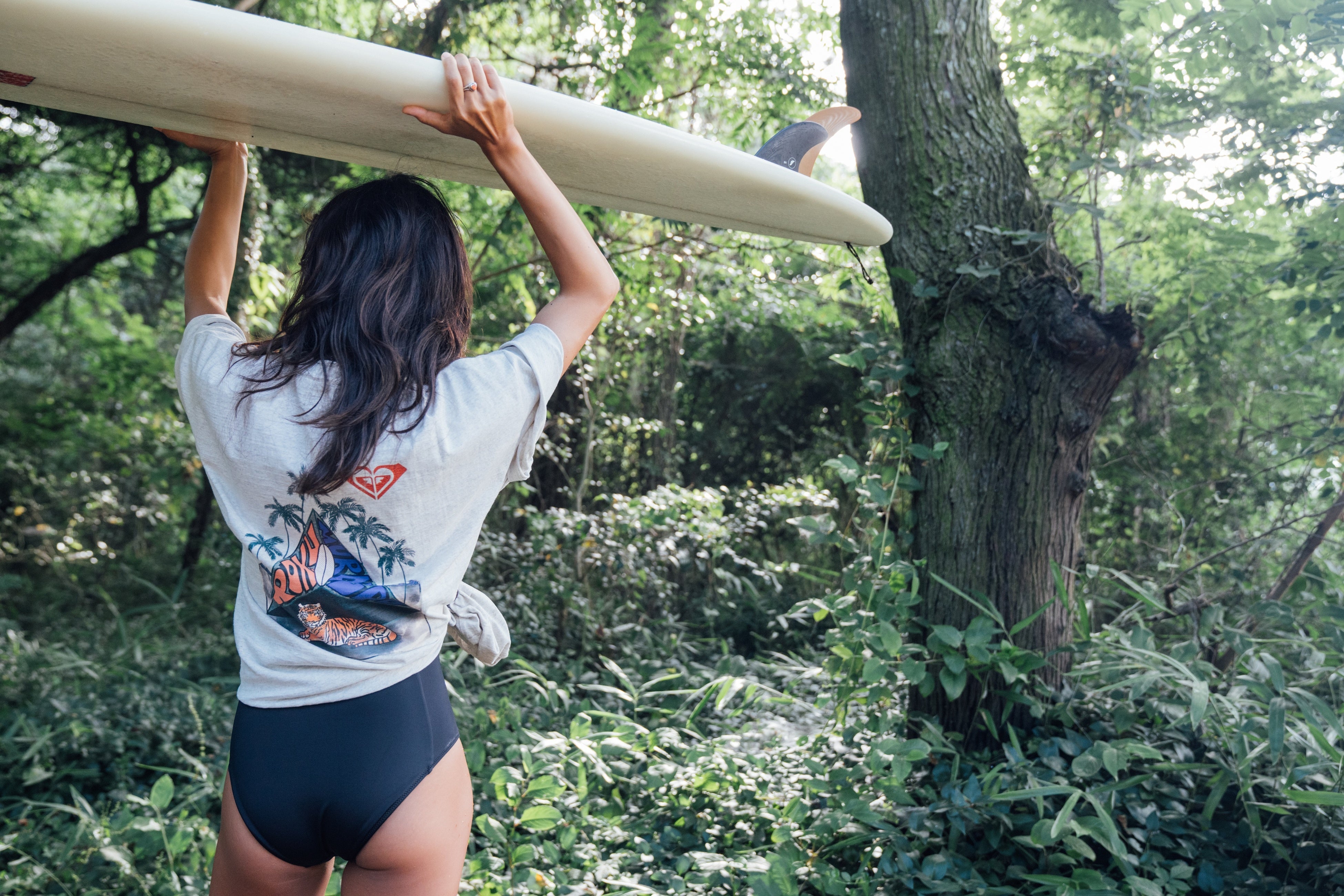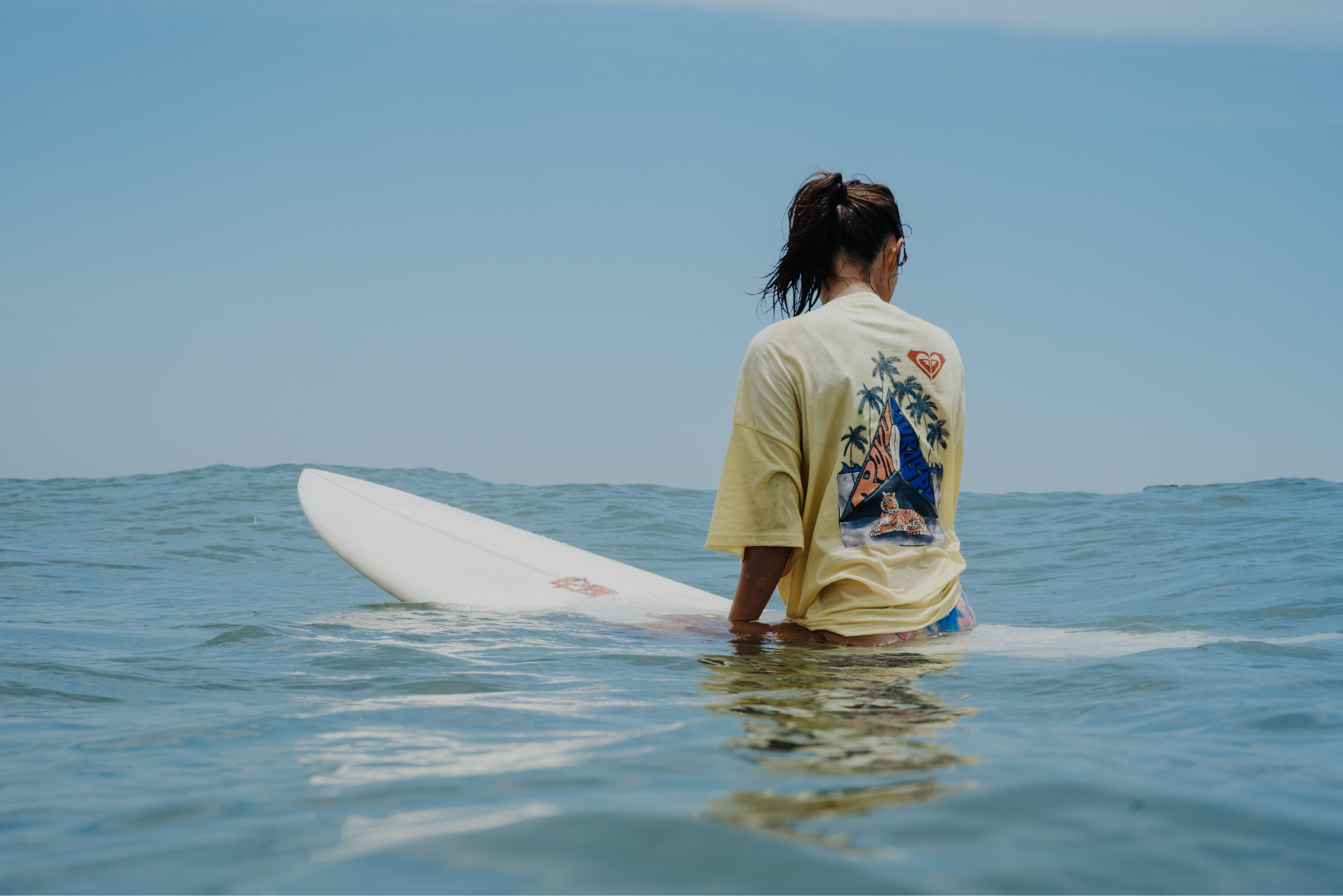 「ムラスポ×ROXY×ERI TAKAGI」 Tシャツは、カリフォルニアを中心に、ビーチカルチャーとアクティブなライフスタイルを愛する女の子たちからの「女の子のためのビーチウェアが欲しい」という声から1990年に誕生したブランド「ROXY」と、湘南出身のアーティストでサーファーのERI TAKAGIとのトリプルコラボとなります。