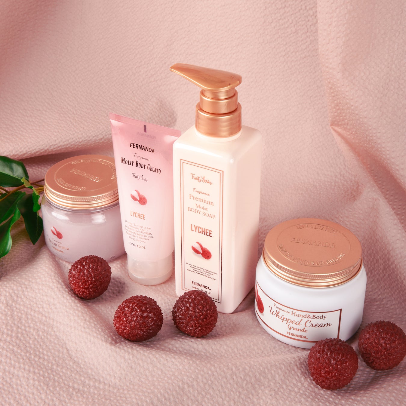 そんな新富町産ライチのロス果実からエキスを抽出*し、配合した「ライチコレクション」。はじけるようなみずみずしいライチをベースに、フルーティーなカモミール、フレッシュでほんのり甘いマスカットを重ねることで、生のライチのような果実感溢れる香りに仕上げました。