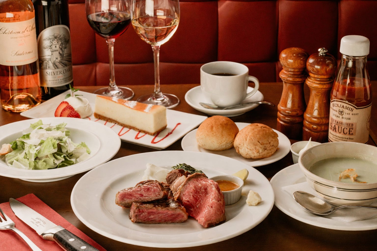 NYの名門ステーキハウスをもっと気軽に楽しめる「ベンジャミン グリル 京都店」、4種のお肉料理と赤ワインのペアリング楽しめるランチ「3種類のワインペアリング付き ベンジャミン グリル コース」登場