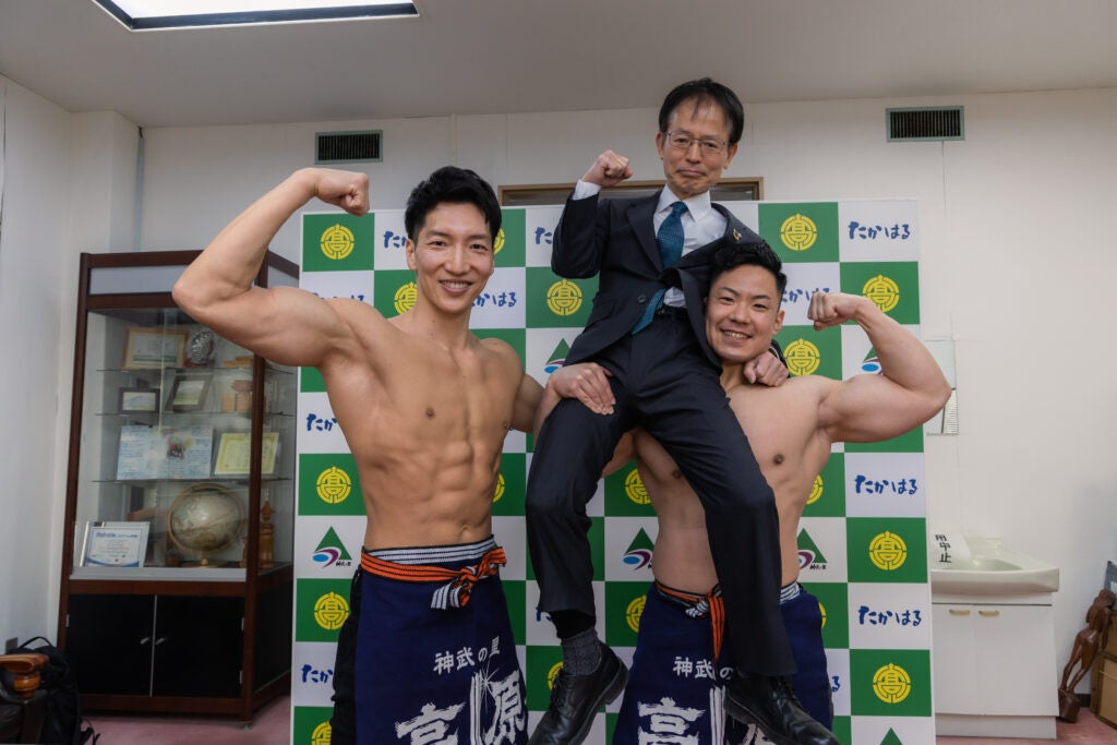 「使う用途ないけど面白い」とSNSやメディアで話題のマッチョのフリー素材・ストックフォトサイト「マッスルプラス」。宮崎県高原町の町長へマッチョたちが表敬訪問する様子をフリー素材として提供致します。