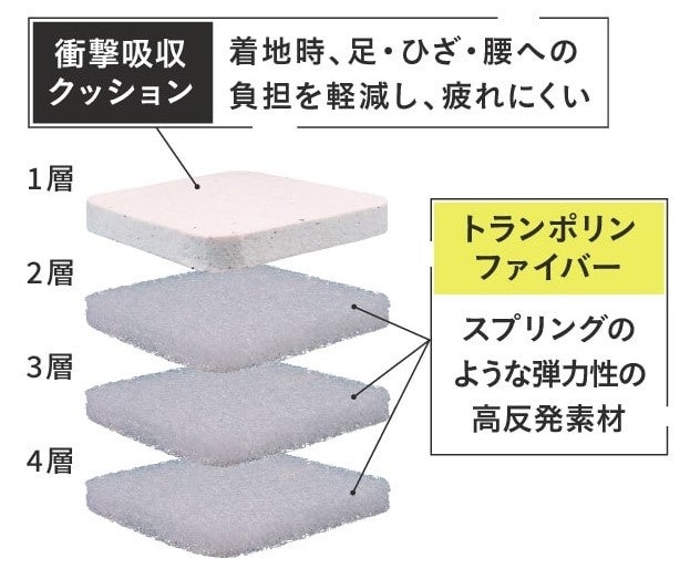 ⇒中材に衝撃吸収クッションと弾力性の高いクッションを使用した4層構造。