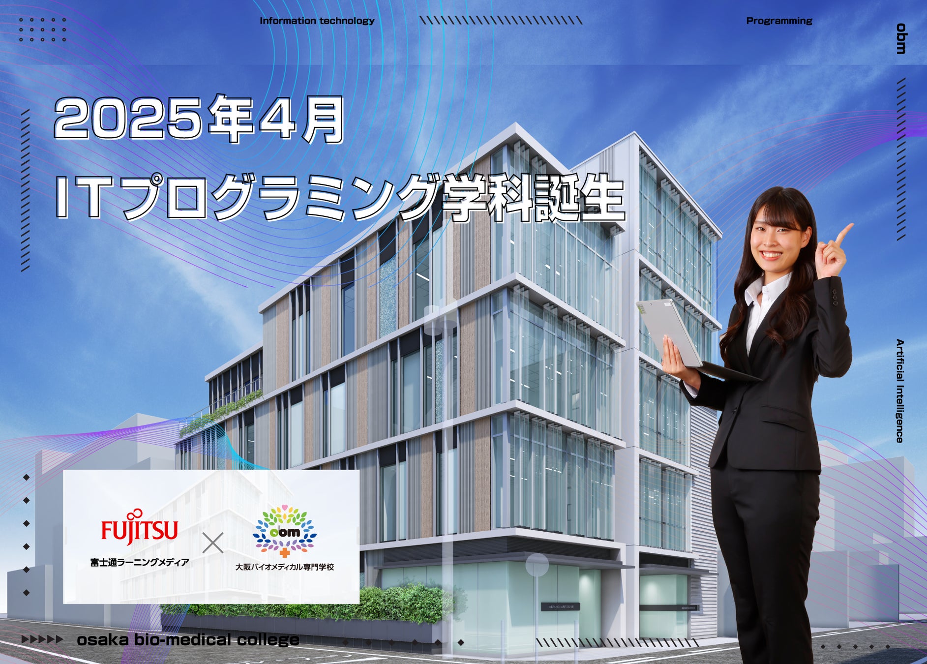学校法人佐藤学園 大阪バイオメディカル専門学校(大阪府大阪市、以下当校)は、2025年4月に「ITプログラミング学科」を新設いたします。ITプログラミング学科のカリキュラムは、富士通グループの総合人材育成企業である株式会社富士通ラーニングメディア(神奈川県川崎市)と共同で企画を行い、IT人材の育成に取り組みます。