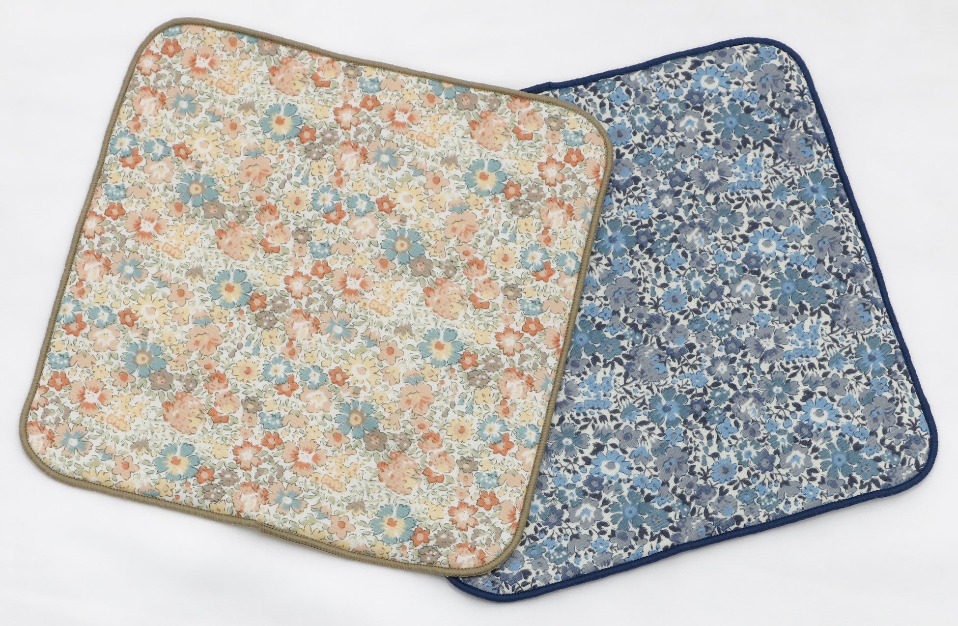 表地は総柄リバティで存在感のあるミニタオルは、上品さとかわいらしさを備えたデザイン。