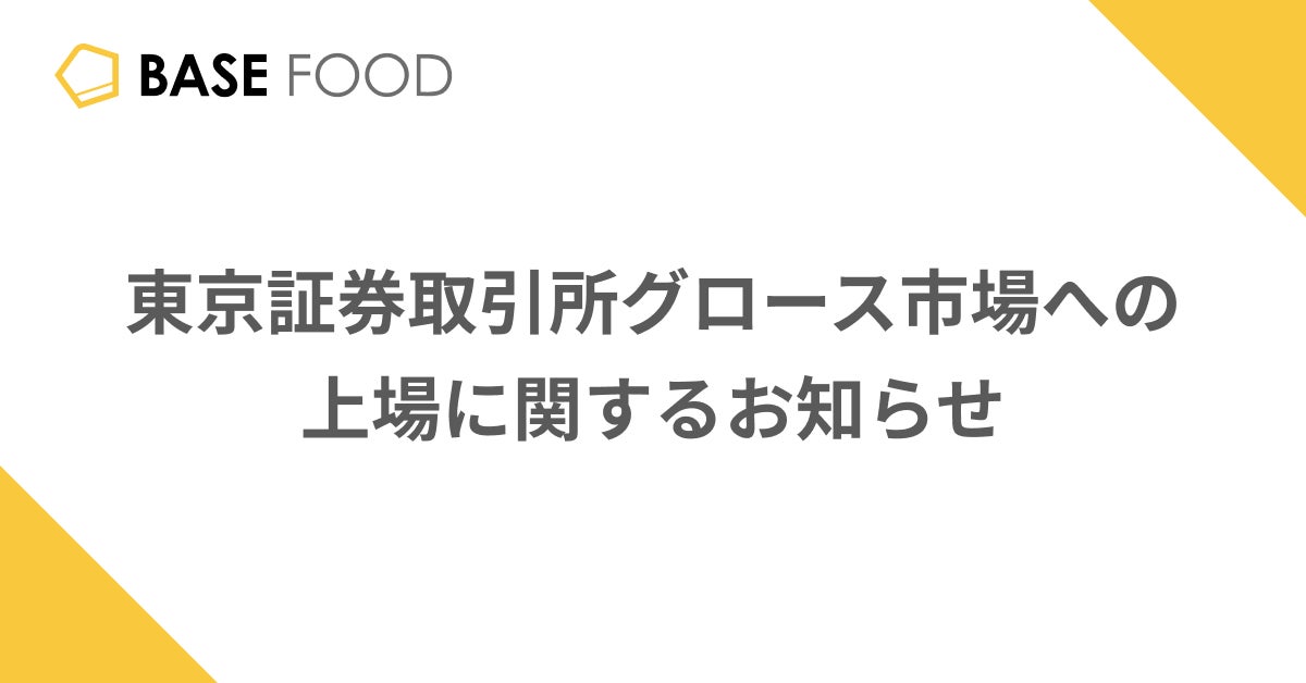 完全栄養の主食を開発・販売するベースフード、東京証券取引所グロース市場への上場に関するお知らせ