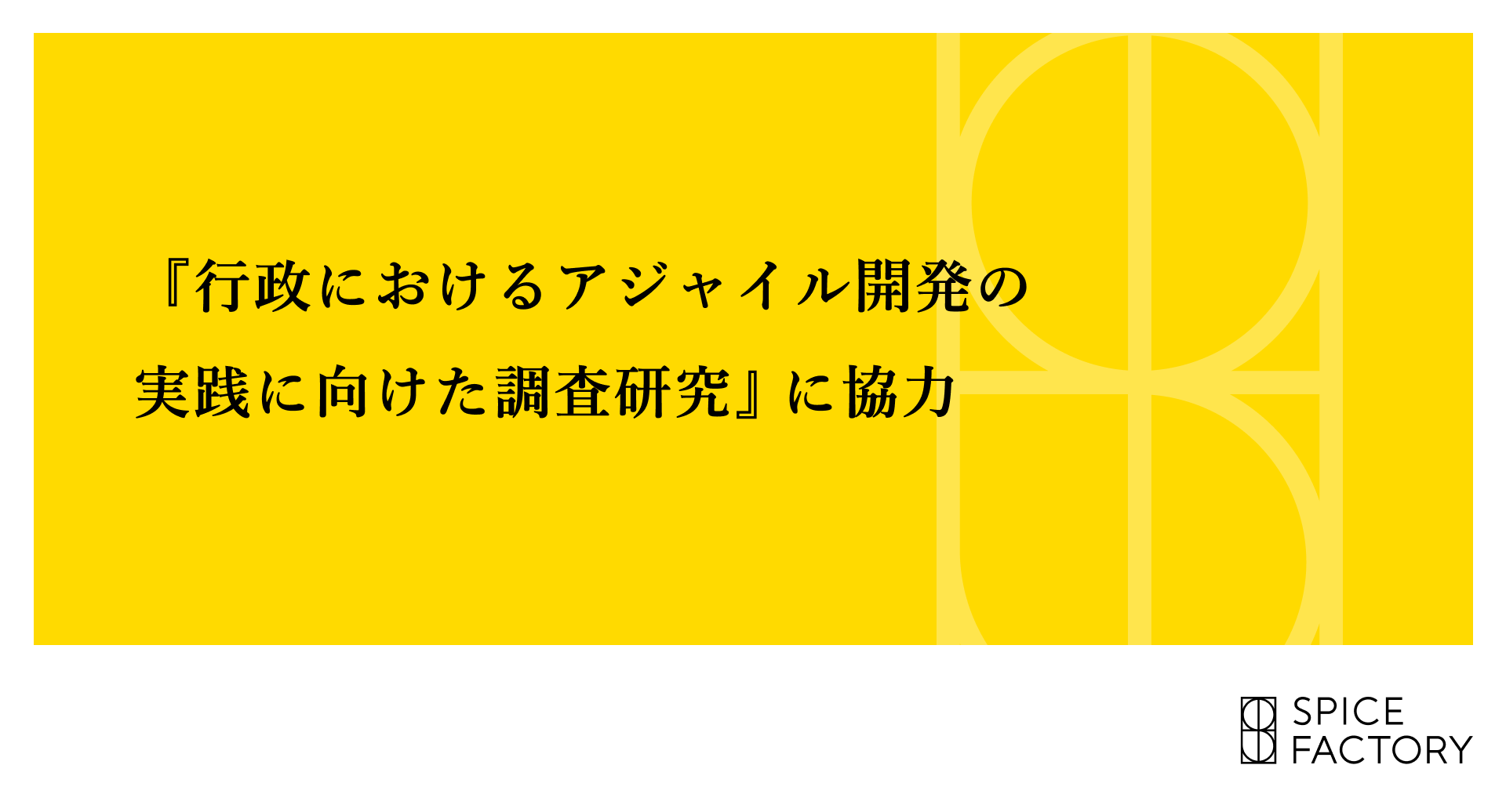 デジタル・トランスフォーメーションを⽀援するスパイスファクトリー株式会社(本社:東京都港区、代表取締役CEO:高木 広之介)は、一般社団法人行政情報システム研究所(AIS)が2024年4月10日に公開した「行政におけるアジャイル開発の実践に向けた調査研究」に協力いたしました。調査研究の協力は、当社が携わった東京都デジタルサービス局とのアジャイル開発の取り組み内容について情報提供や意見交換をおこなっています。