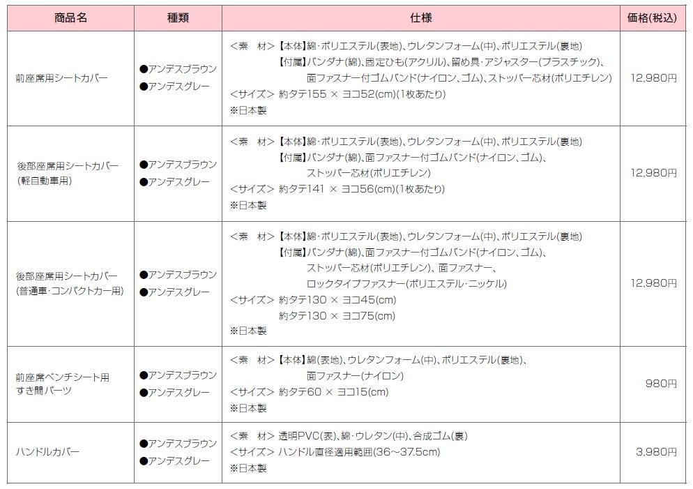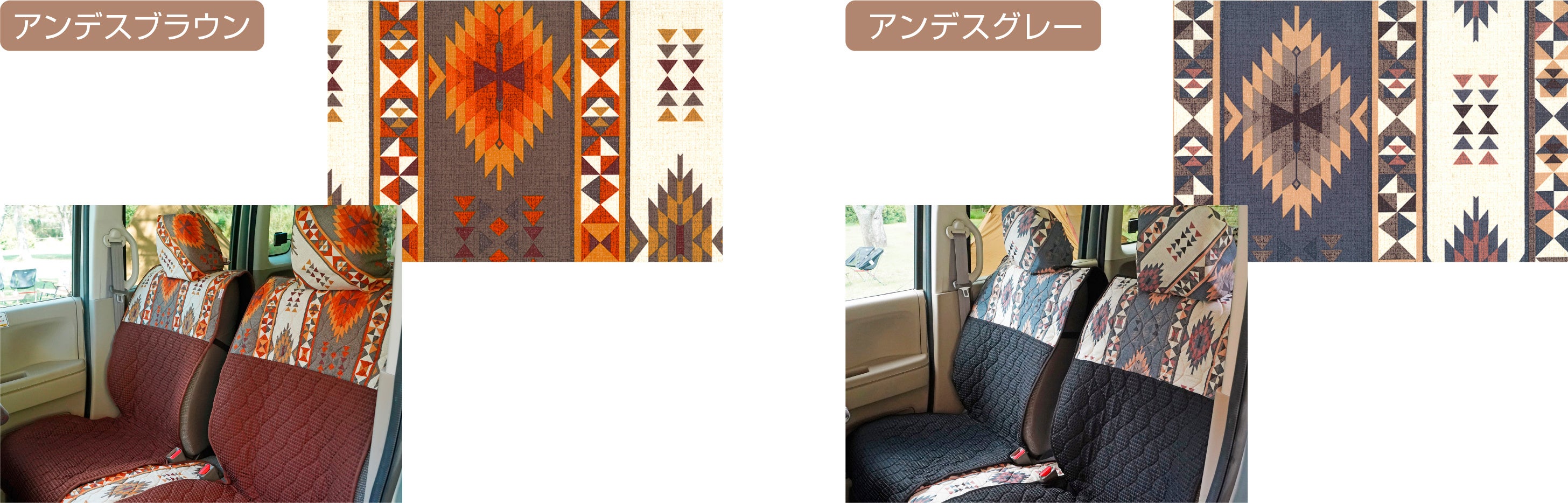 カラーは「アンデスブラウン」と「アンデスグレー」の2種類を展開。また、シート中央部の切り替えデザインは「アンデスブラウン」ではブラウンの生地、「アンデスグレー」ではブラックの生地との組み合わせで、車内を大人っぽく演出します。
