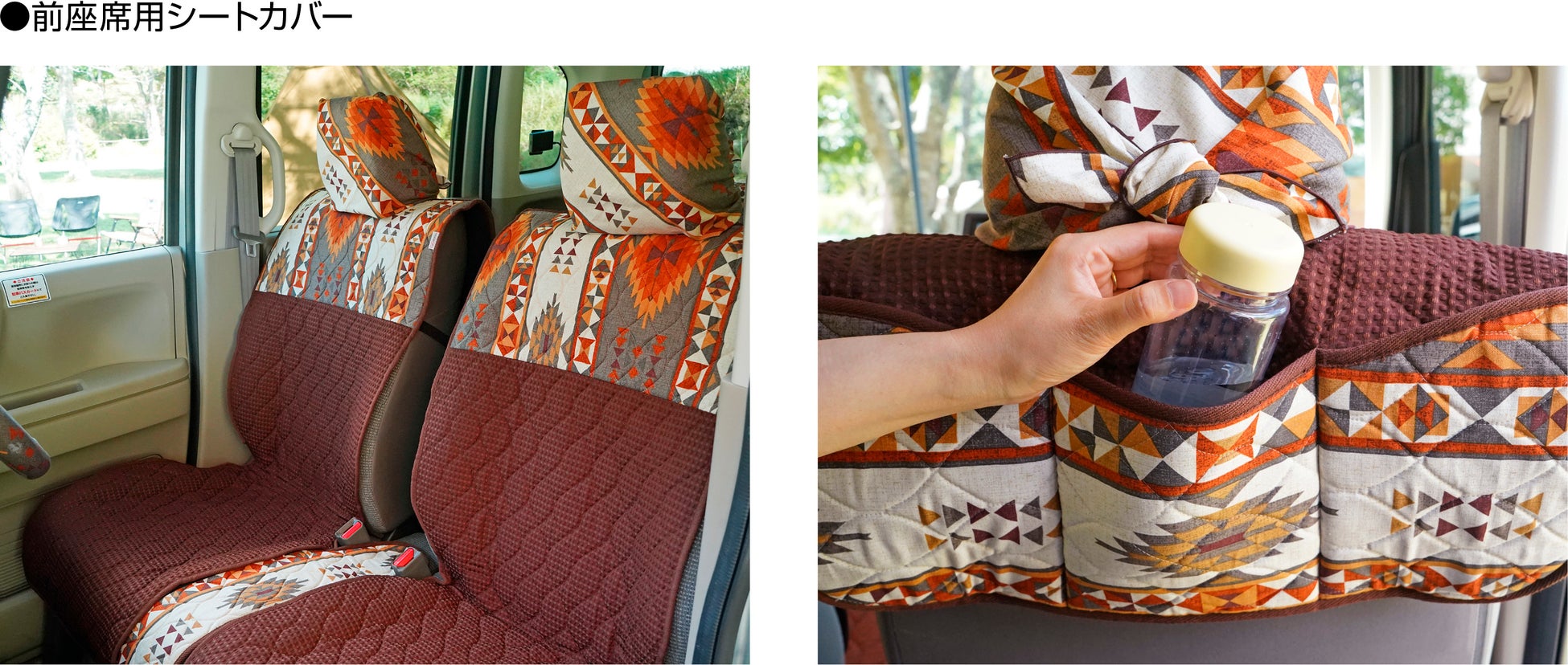 前座席用シートカバーは、背面に気軽に使えるポケットを装備しているため、車内収納にも大変重宝します。