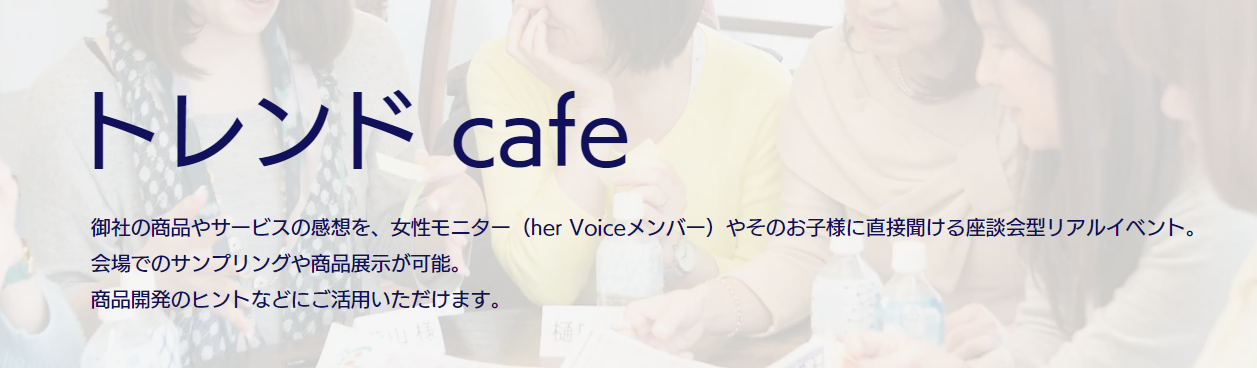 女性インサイト総研を有する株式会社ハー・ストーリィ(本社:東京都港区、代表取締役:日野佳恵子)は女性モニターやそのお子様に直接意見を聞ける座談会リアルイベント「トレンドcafe」の開催を決定しました。