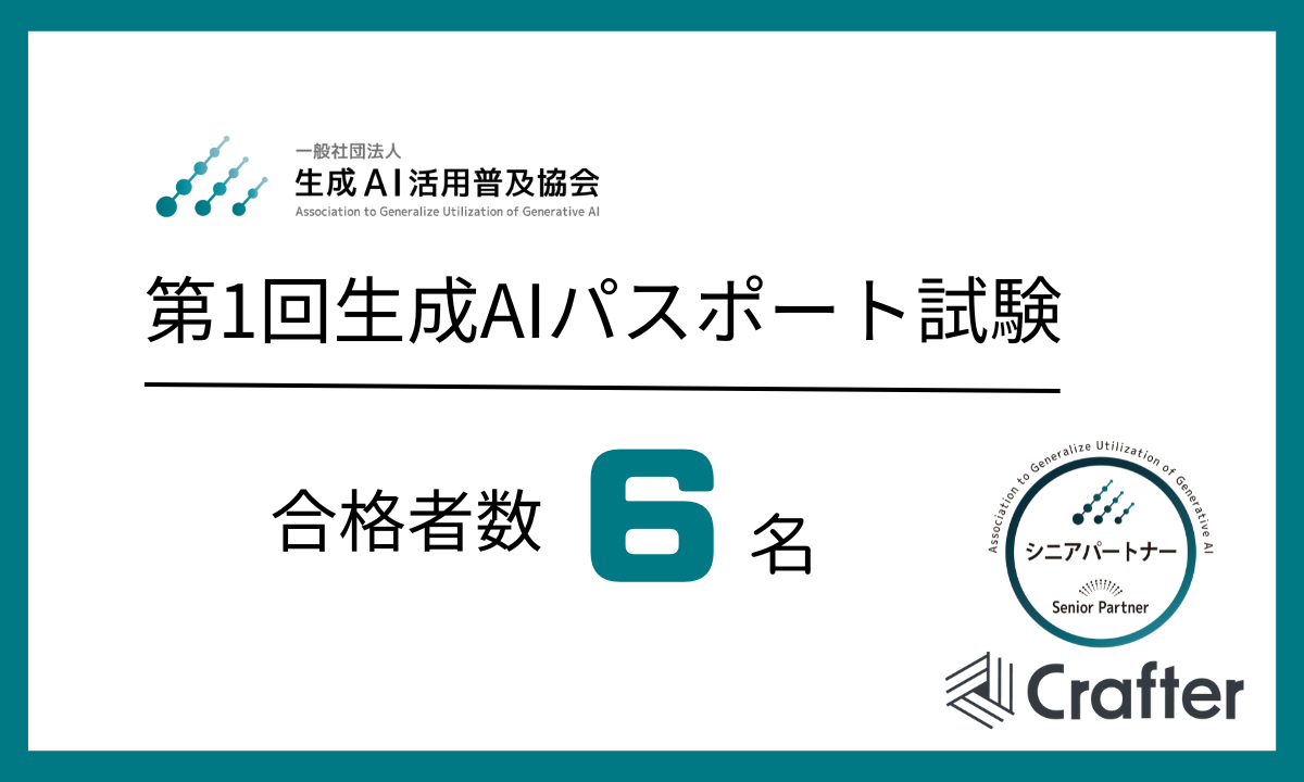 株式会社クラフター、一般社団法人生成AI活用普及協会(GUGA)が主催する第1回「生成AIパスポート試験」6名の合格者を発表