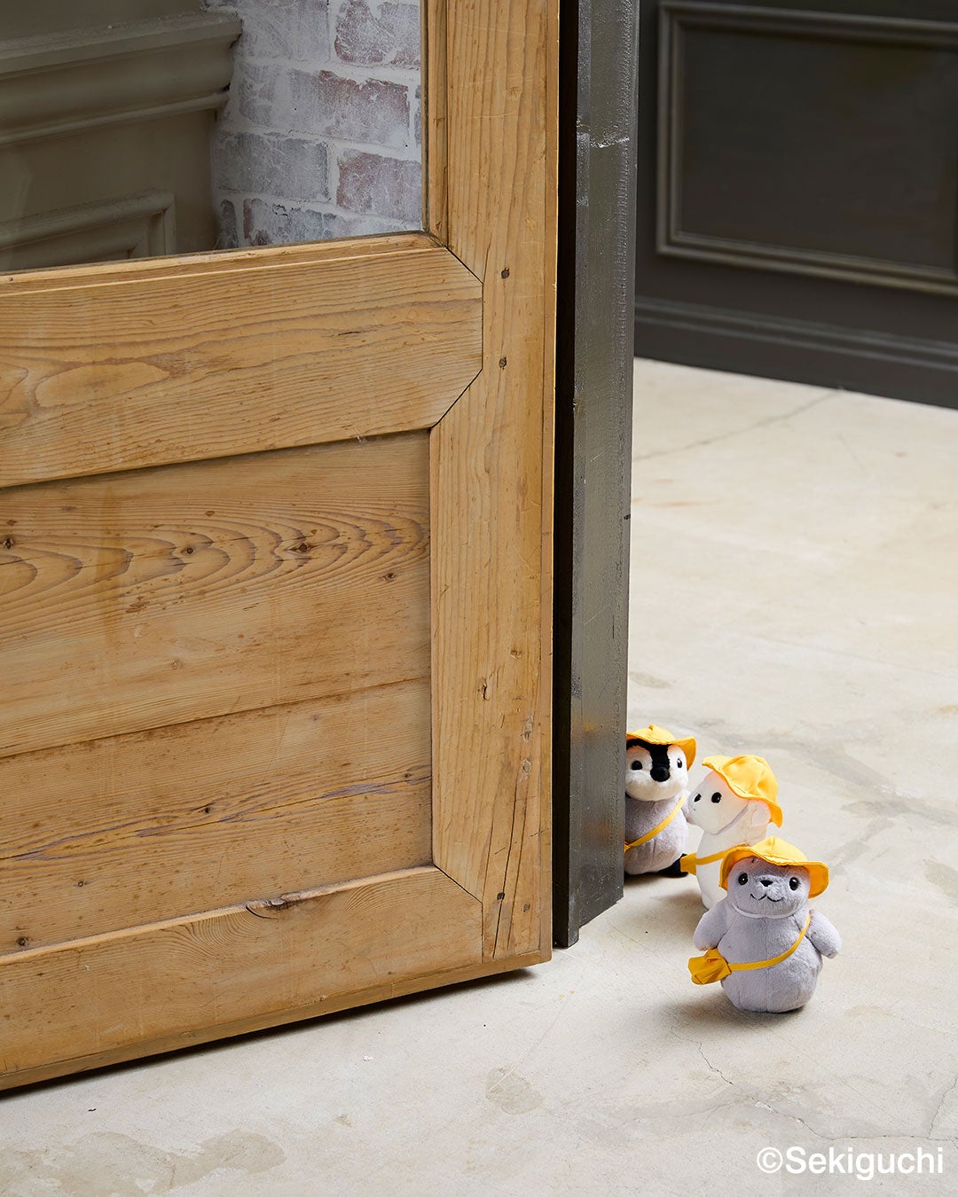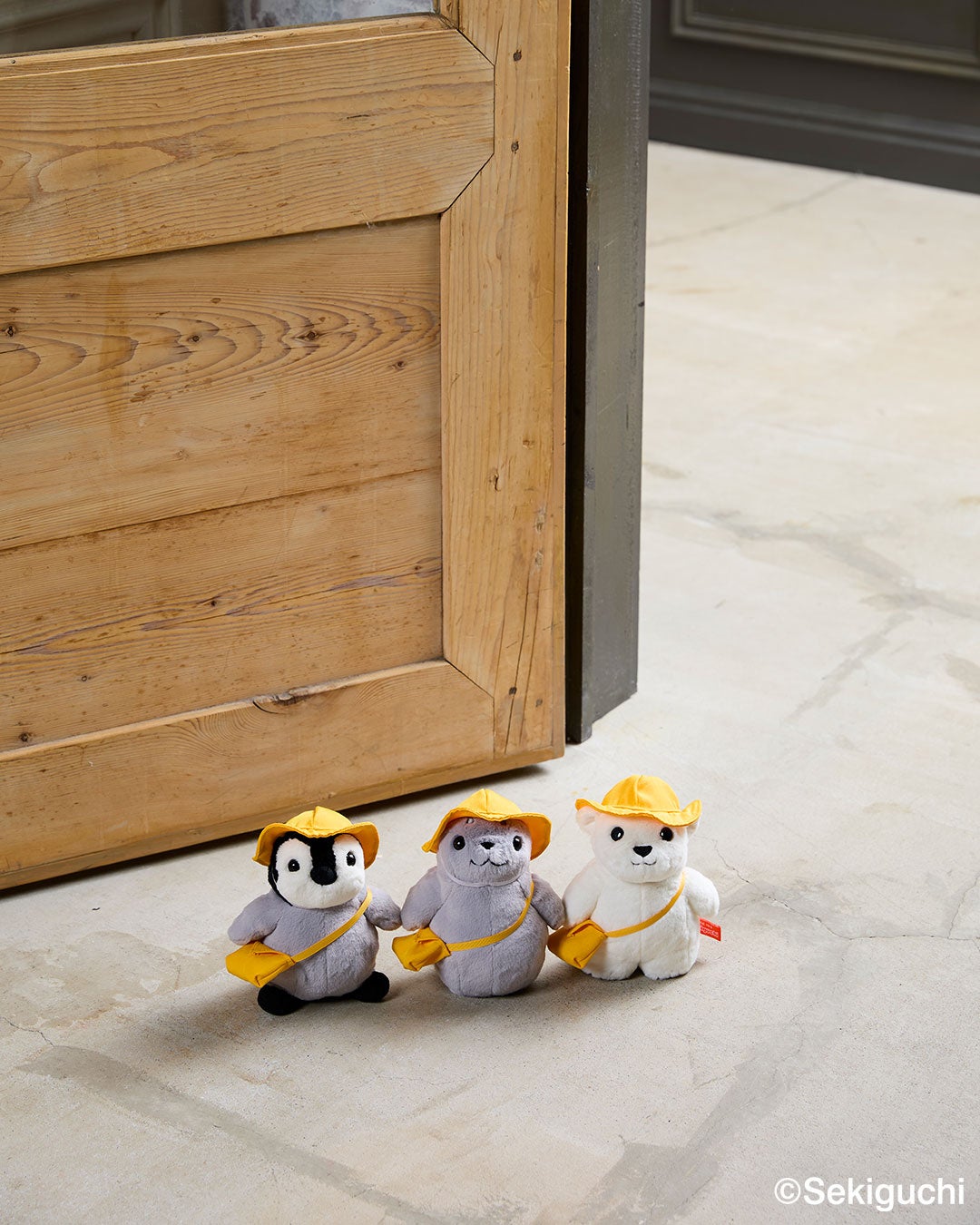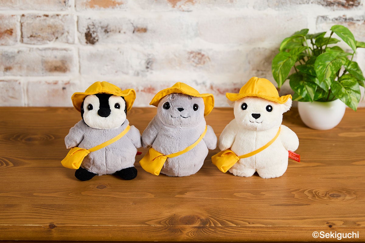 コロンとした身体に、黄色い帽子とバッグが目を引く幼稚園スタイルのアニマルぬいぐるみです。「アザラシ」「シロクマ」「ペンギン」のかわいい海のクラスが誕生しました。