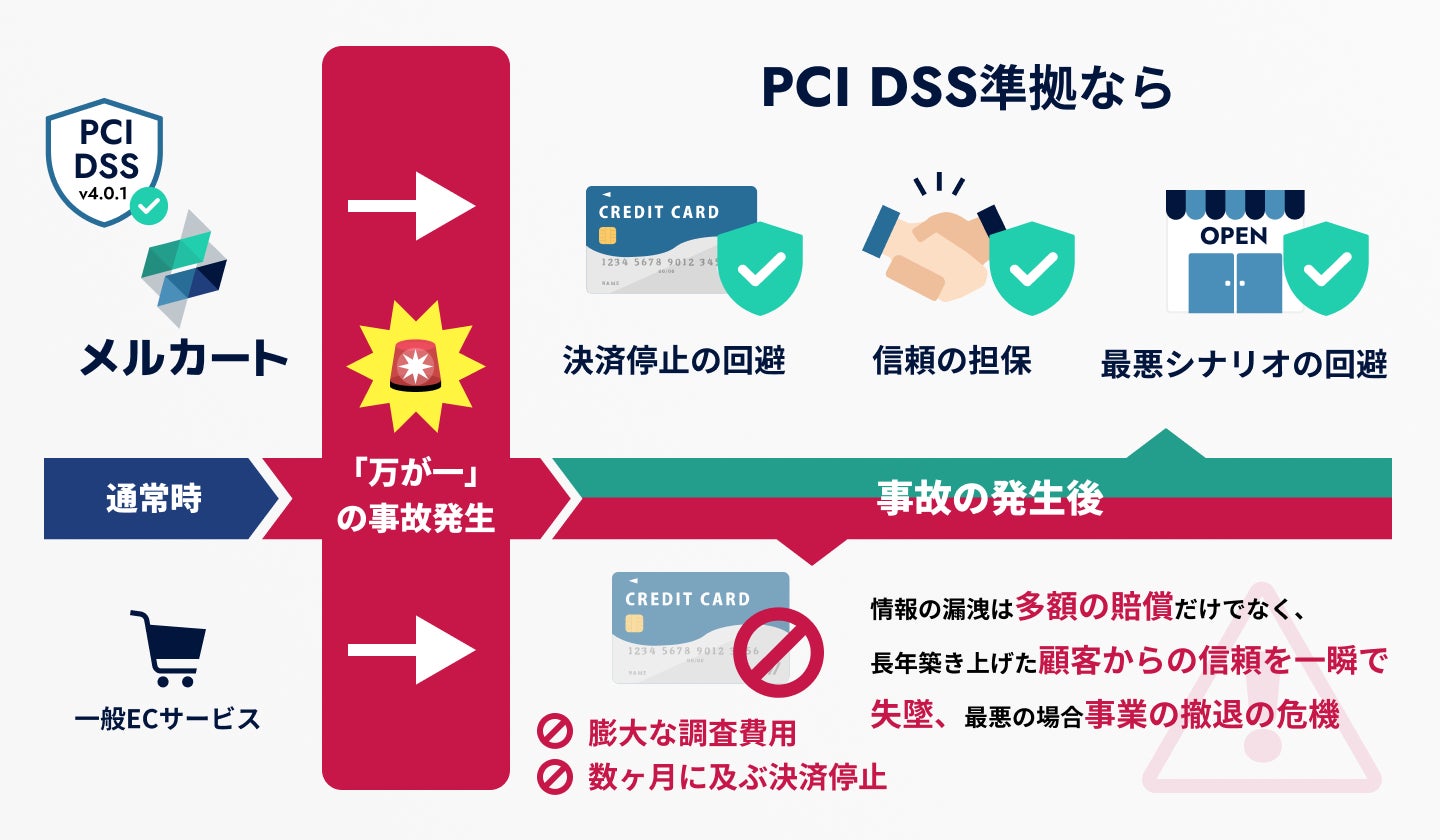 株式会社メルカート(本社:東京都港区、代表取締役社長:渡邉 章公/以下、メルカート)は、提供するクラウドEC構築プラットフォーム「メルカート」において、クレジットカード業界の国際セキュリティ基準である「PCI DSS(Payment Card Industry Data Security Standard)」の最新バージョン「v4.0.1」に準拠しました。