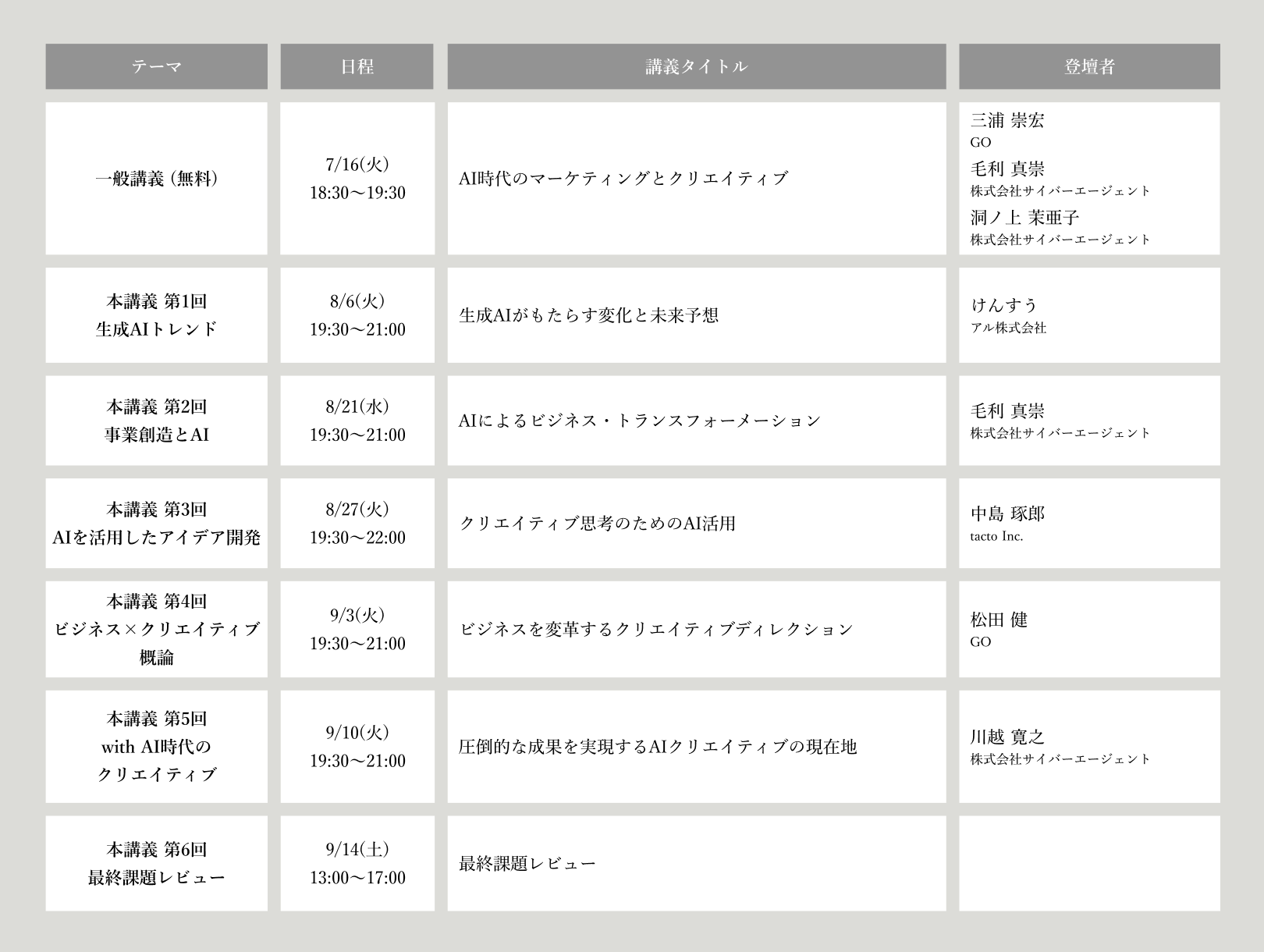 ・ホームページ:https://thecreativeacademy.com/special_event/cyberagent_AI_course