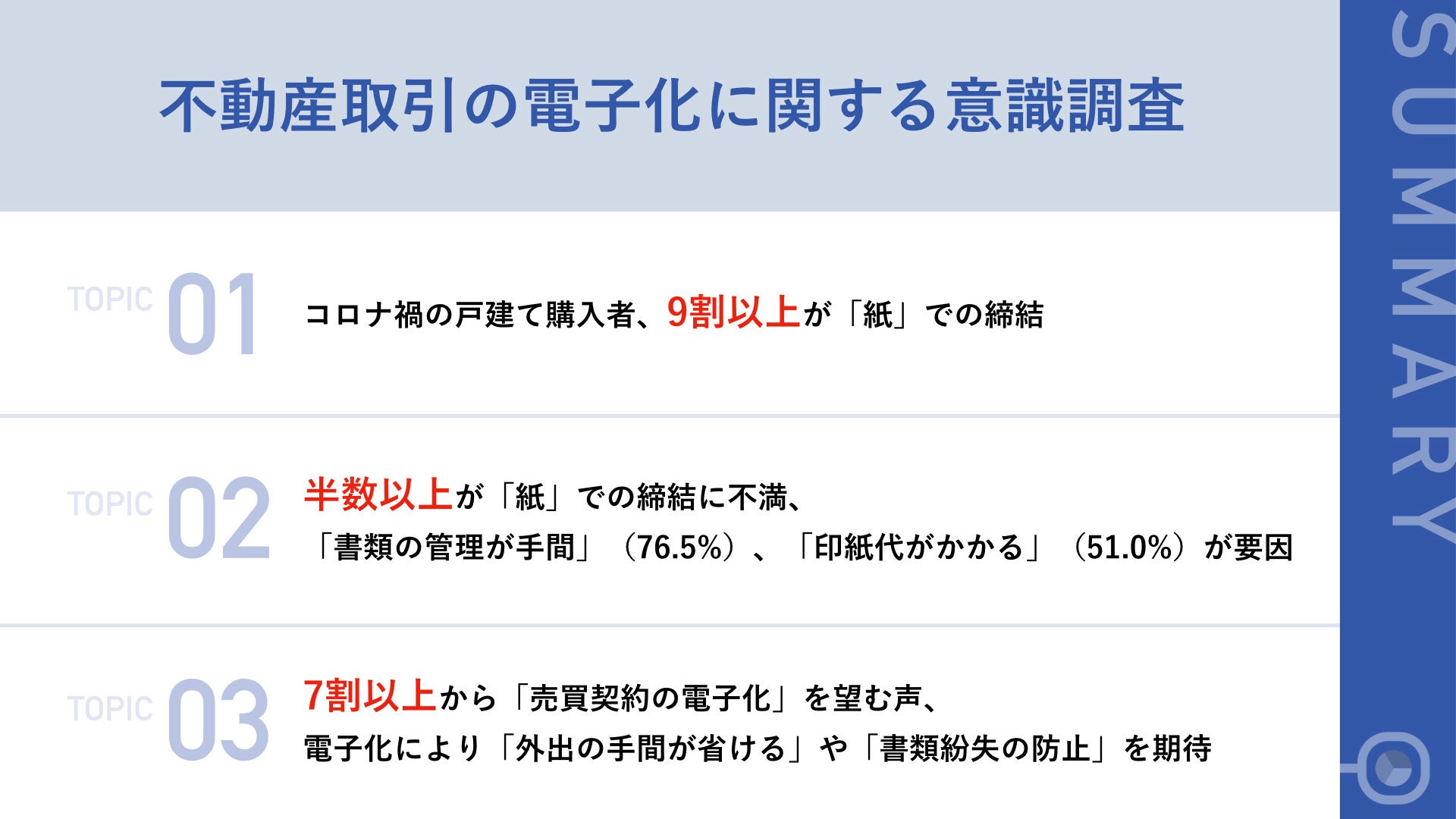 【不動産取引の電子化に対する購入者の意識は?】コロナ禍の戸建て購入者、9割以上が「紙」での締結 そのうち半数以上から「不満」の声、『印紙代が高すぎる...』
