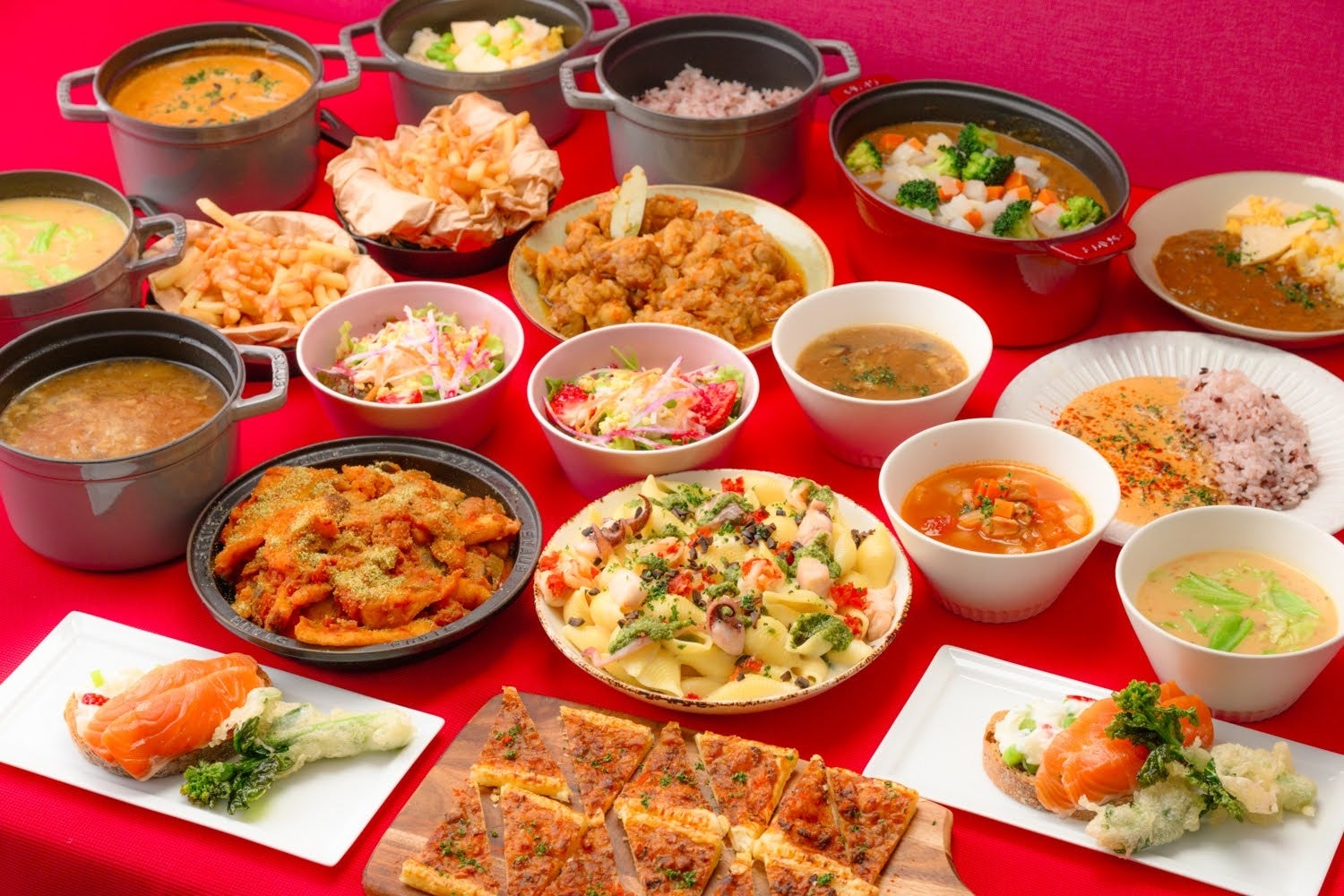 4)クリーミーシーフードショートパスタ ジェノベーゼソース 5)白いストロガノフ 6)野菜たっぷりカレー 7)筍・卵・チーズ・豆のピラフ 8)古代米/白米 9)具だくさんの食べるスープ2種 (春キャベツのクリーミースープ・新玉ねぎのクリアなブイヨンスープ)