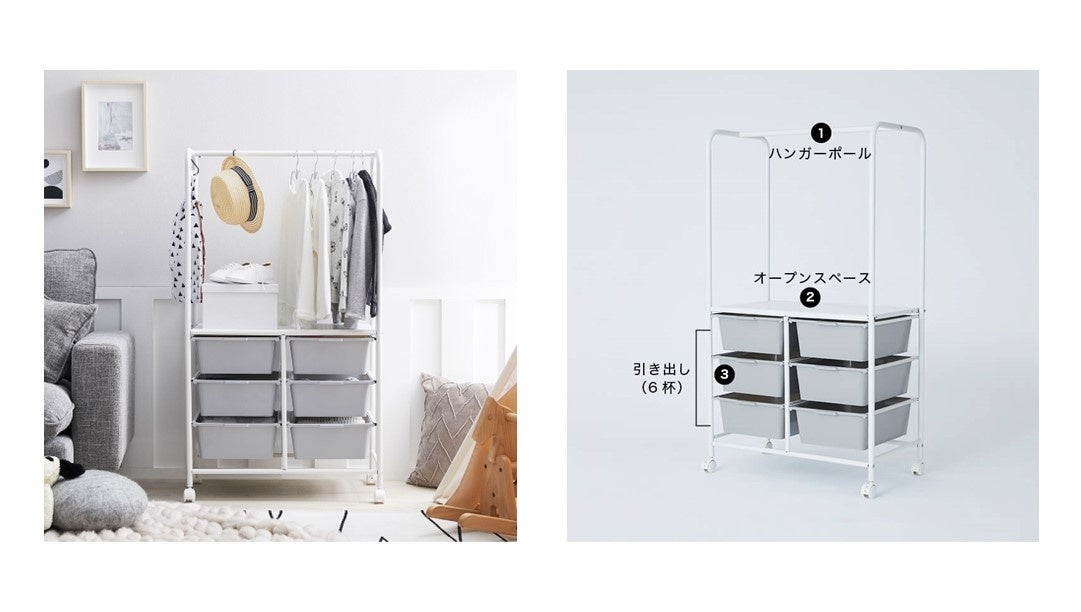 どんなインテリアにも馴染むように計算されたデザインは、散らかりがちな子ども部屋をスマートに演出してくれます。靴下や下着などの衣類から小物まで、種類を分けて収納できる引き出しは計6杯ついており、完全に取り外すこともできるので、お片付けも簡単!