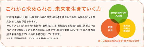 そのような激動の社会を生き抜いていくためには、子どもたち自身が、自ら考え、納得できる正解を導き出していく力が必要となってきます。