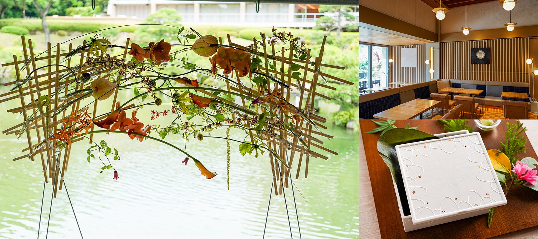 テーマを「 借 景 」とし、呼びかけたフラワーデザイナー、シェフ、アーティスト、それぞれの解釈で各作品にその要素を落とし込み、庭園の緑が深さを増す季節に企画展をスタートさせました。