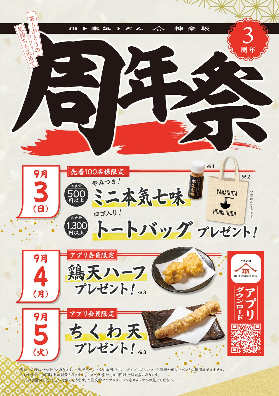 山下本気うどん 神楽坂3周年記念 「周年祭」開催