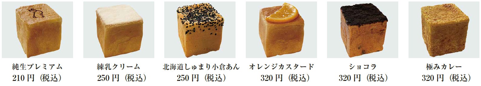 見た目にも可愛い手のひらサイズの食パンです。食べ放題の「純生プレミアム」に加え、テイクアウトとして「北海道しゅまり小倉あん」など6 種類を販売いたします。(価格はテイクアウトの価格です)