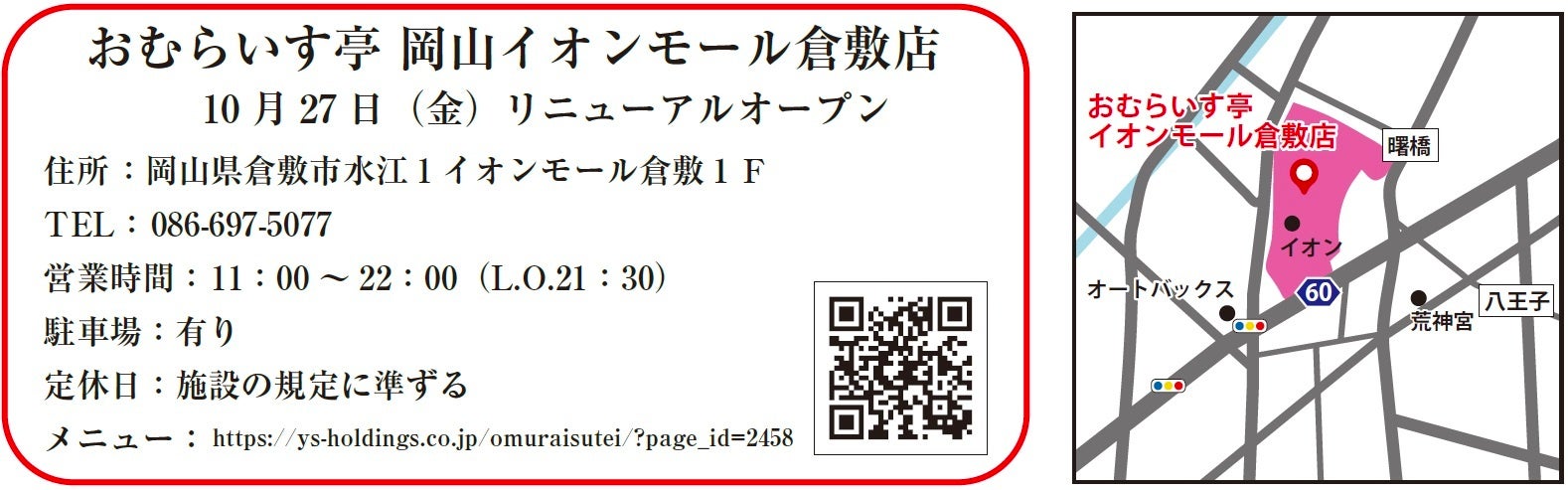 「おむらいす亭」イオンモール倉敷店新メニュー追加!リニューアルオープンのお知らせ