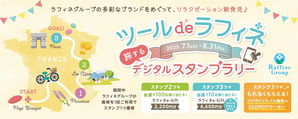 『ツール・ド・ラフィネ』デジタルスタンプラリーキャンペーンは、7月1日から8月31日まで、全国のラフィネグループ店舗にて開催いたします。多くのお客様のご参加をお待ちしております。