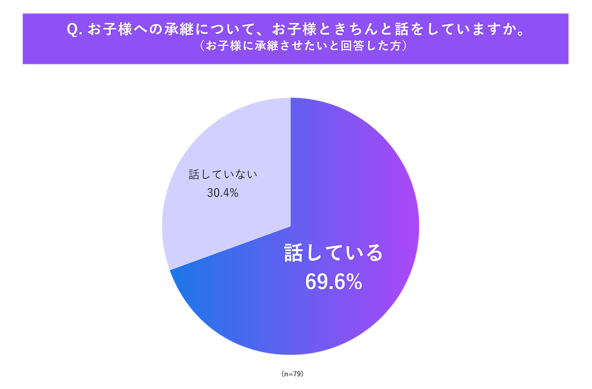 子どもに継がせたいと考えている経営者の多くは既に子どもときちんと話をしており、事業承継に向けた準備に取り組んでいるといえます。