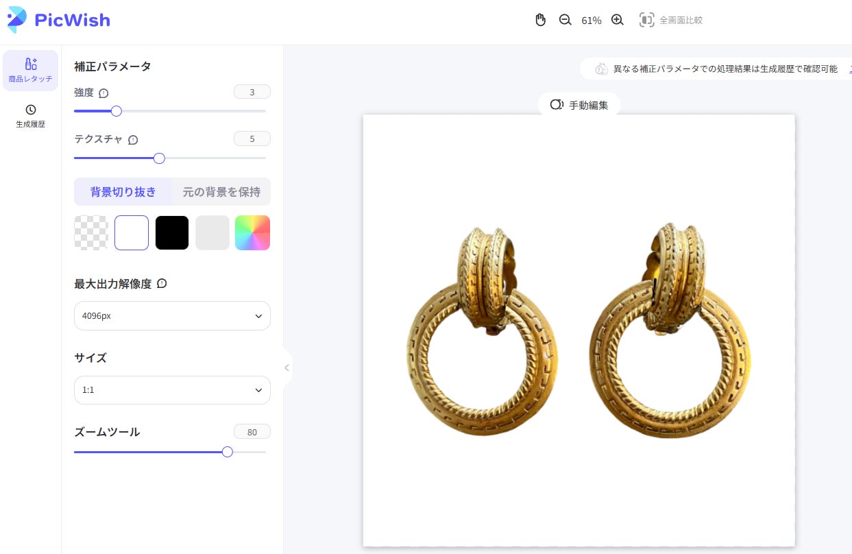 PicWishの手頃なプラン(無料プラン含む)で、このプロ級の編集機能を利用可能。