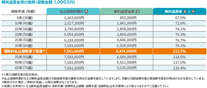 契約例 ■契約年齢:30歳(女性) ■保険金額:1,000万円 ■保険期間:終身