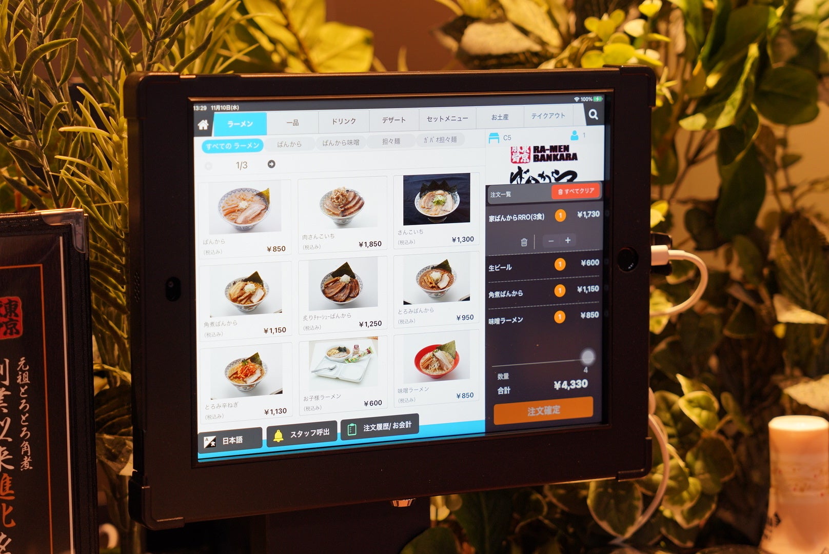 また、コロナ禍で、お客様に安心していただけるよう非接触型注文タブレットを全席に設置し、無人会計レジを導入致しました。今後もお客様に寄り添ったサービスを展開していきます。