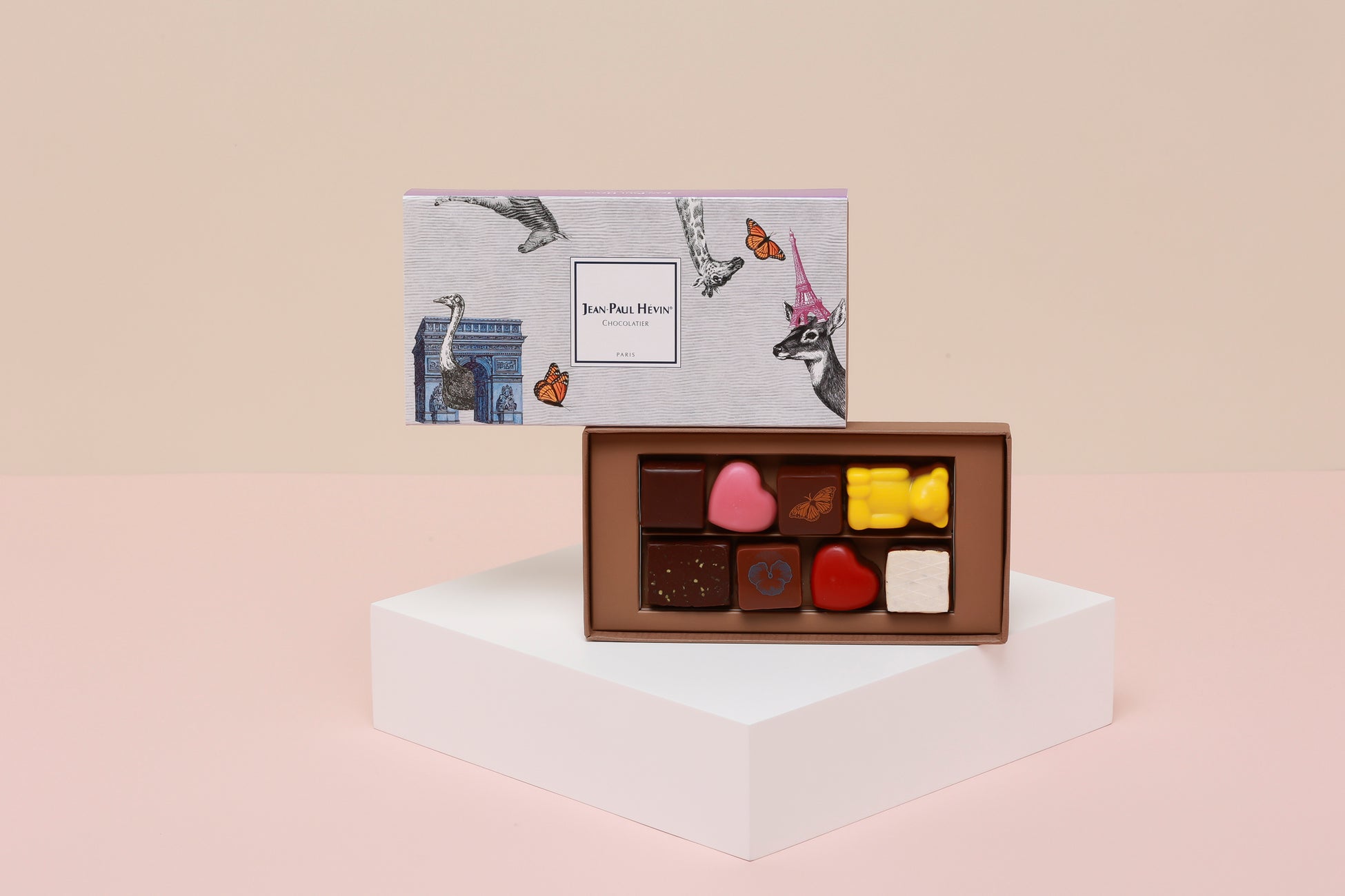 厳しい冬を超え、新しく芽吹く命が人々にかけがえのない喜びをもたらしてくれる季節が巡ってきました。春を告げるホワイトデーコレクションでは、今期のコレクションテーマ<POURQUOI PAS? (こんなのがあっても良いのでは?) >のもと、エッフェル塔の角を持った鹿や、体が凱旋門になったダチョウなど、エヴァン氏がパリの建物を眺めているとき、ふいに浮かび上がった生き物の姿をイメージしたデザインがパッケージになっています。