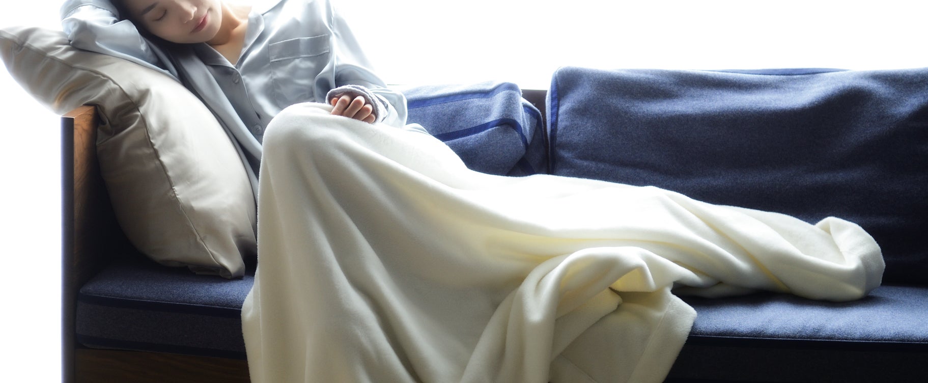 肌にあたる毛羽部分に、シルクと綿の混紡糸を使用。どちらも天然素材なので、適度な保温性と吸放湿性があり、年間を通して快適に使用いただけます。四辺を額縁縫製しているので、顔や手足に触れる端部分の肌触りも◎。素材の柔らかさそのままを活かすような無染色を実現しています。ご家庭で手洗いができます。