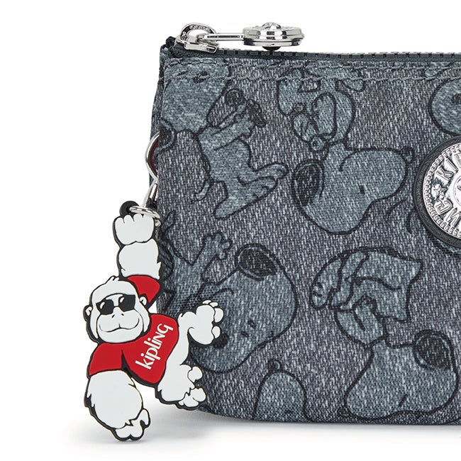 このコラボレーションでは、キプリングの愛すべきアイコンであるモンキーが赤いセーター身にまとい、スヌーピー扮する大学生「ジョー・クール」スタイルのサングラスをかけたチャームが付属しています。