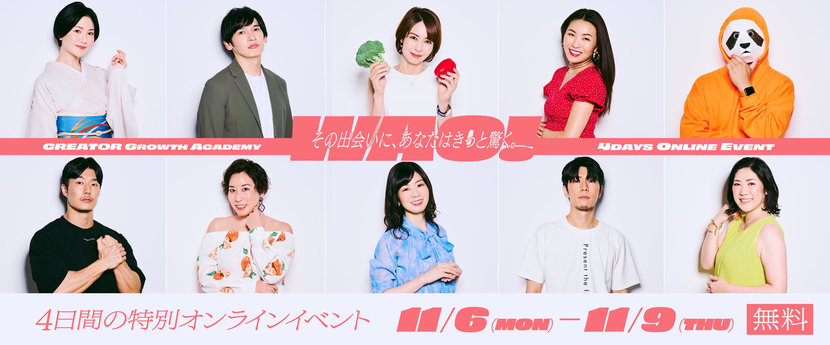 また、プログラム開講を記念して、人気クリエイター10名が参加するオンライントークイベントを2023年11月6日(月)〜11月9日(木)の4日間にわたり開催します。