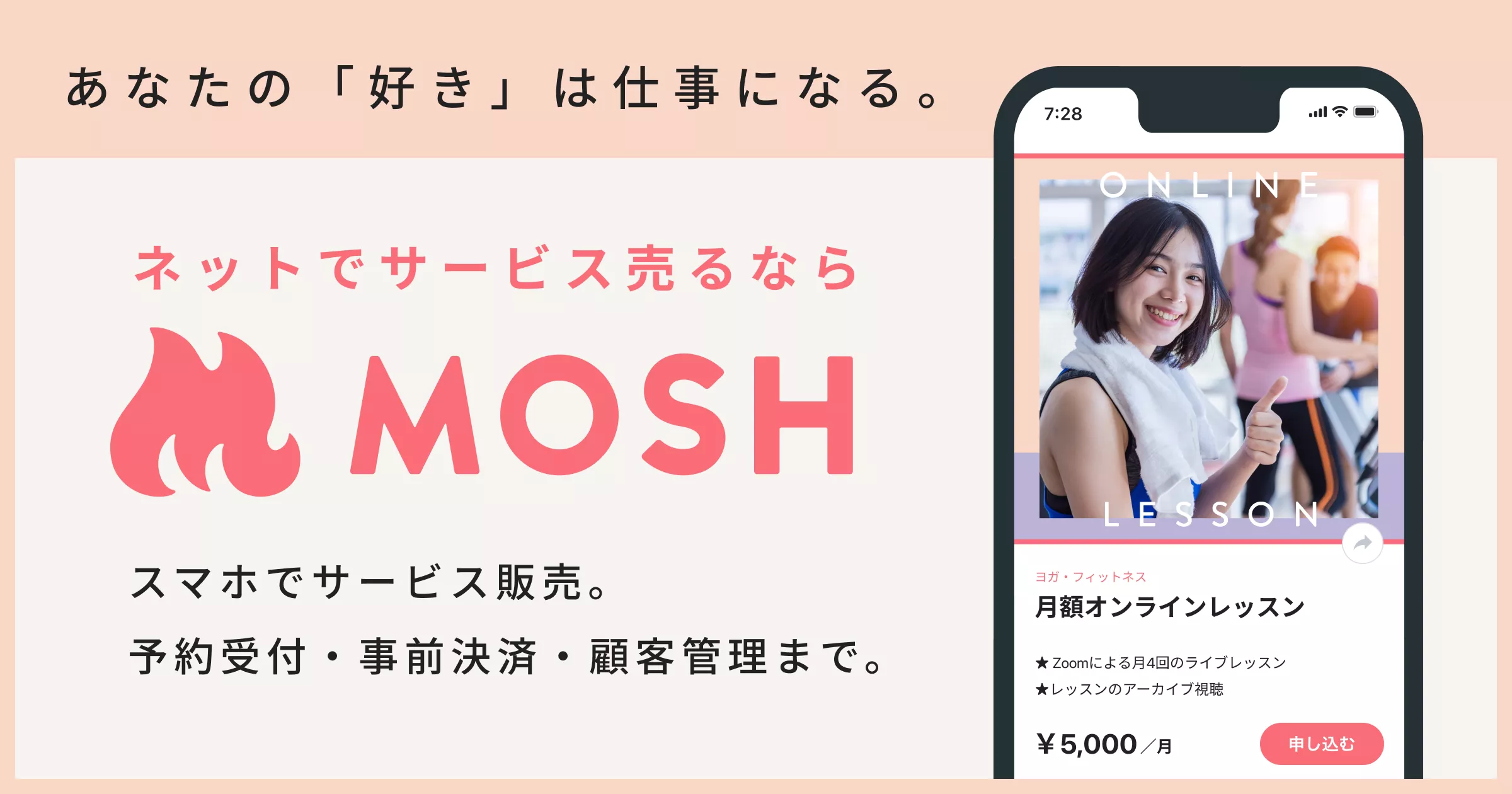 MOSHは、あらゆるサービスをネットでカンタンに売ることができるプラットフォームです。