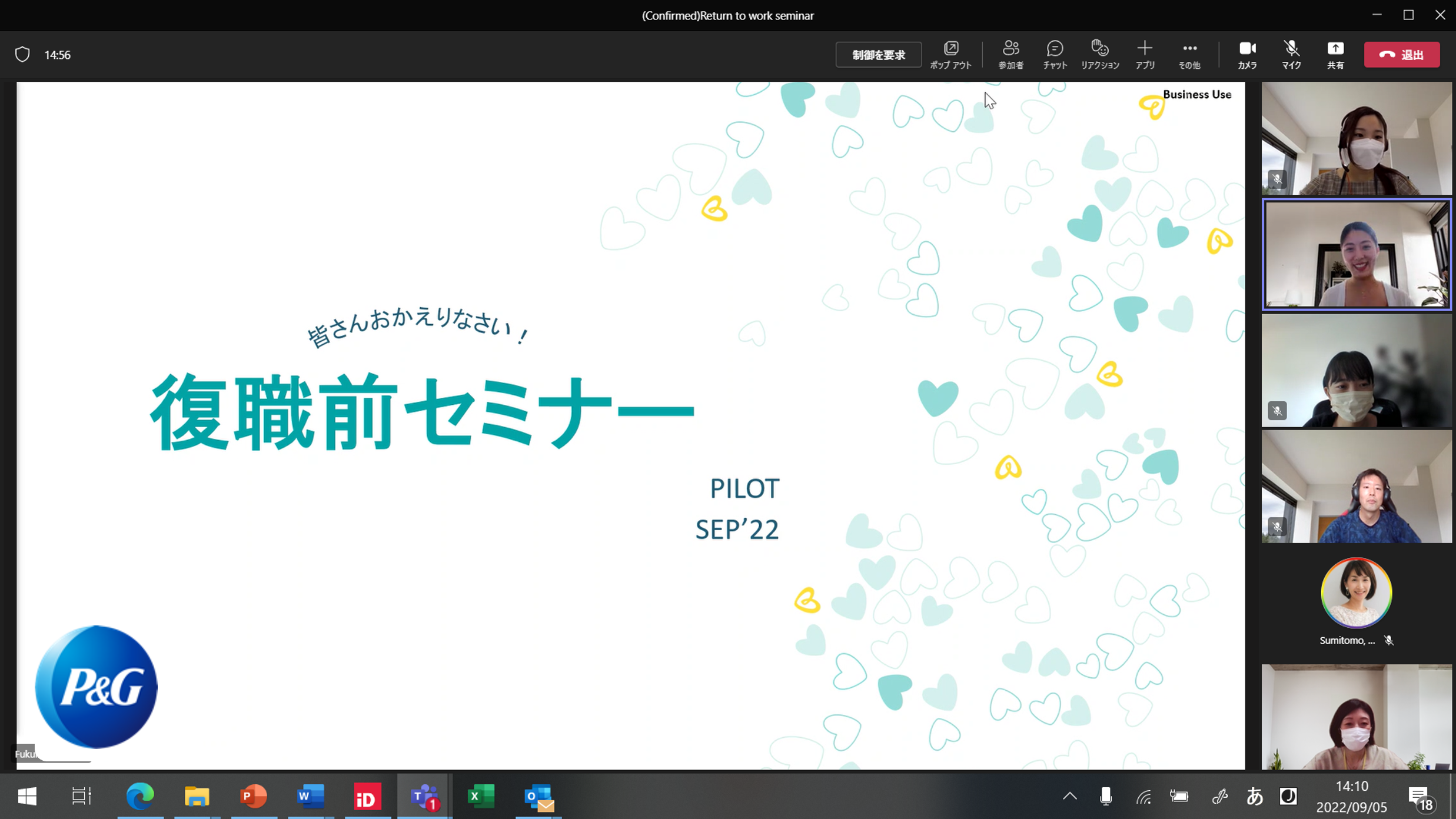 P&Gは、本プロジェクトの推進・普及を通して、組織内でインクルーシブな風土を醸成し、女性だけでなく男性もライフステージの変化とキャリアの育成を両立できる環境作り進めてまいります。