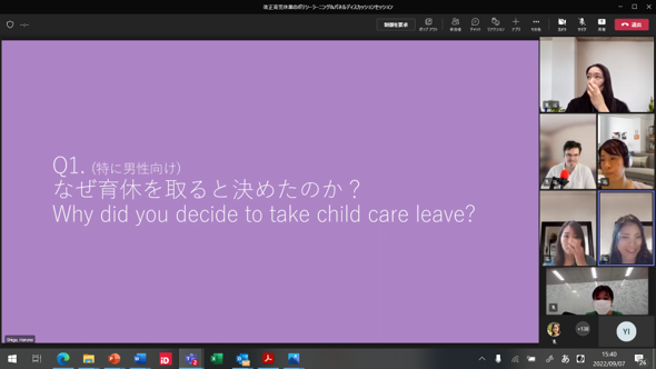 • 先輩パパ・ママのパネルディスカッション:今後のライフとキャリアの計画に役立ててもらうため、育休を取得した先輩ママ・パパの体験談を共有してもらい、質問にも答えてもらう相互コミュニケーション型のセッションです。