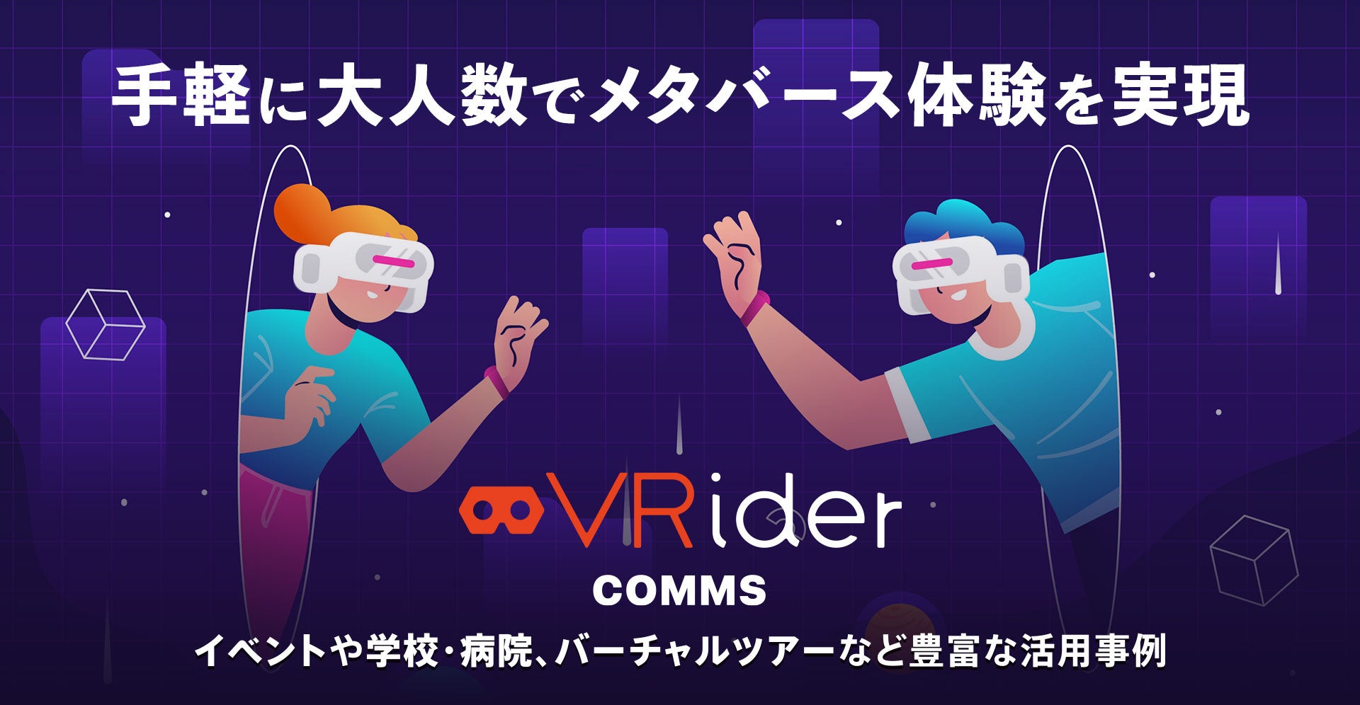 VRゴーグル同士で無線通信を行うVRider COMMSはメタバース空間内での参加者同士のコミュニケーションを簡単に実現できます。そのため、インターネット接続に制限がある学校や、インターネット費用を抑えたいイベント、3次元構造の理解が重要な製造業で選ばれてきました。