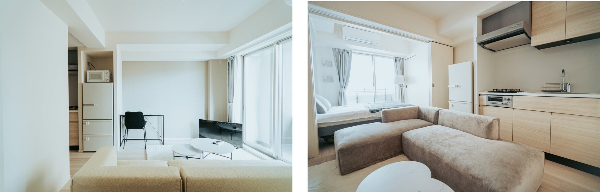 第1弾「Re-rent Residence 渋谷」を2021年6月、既存の賃貸マンションの一部をリレントに最適化した内装にリフォームを行い、またリレントのシステムを導入し、開業しました。好評につき2022年1月に増室しています。