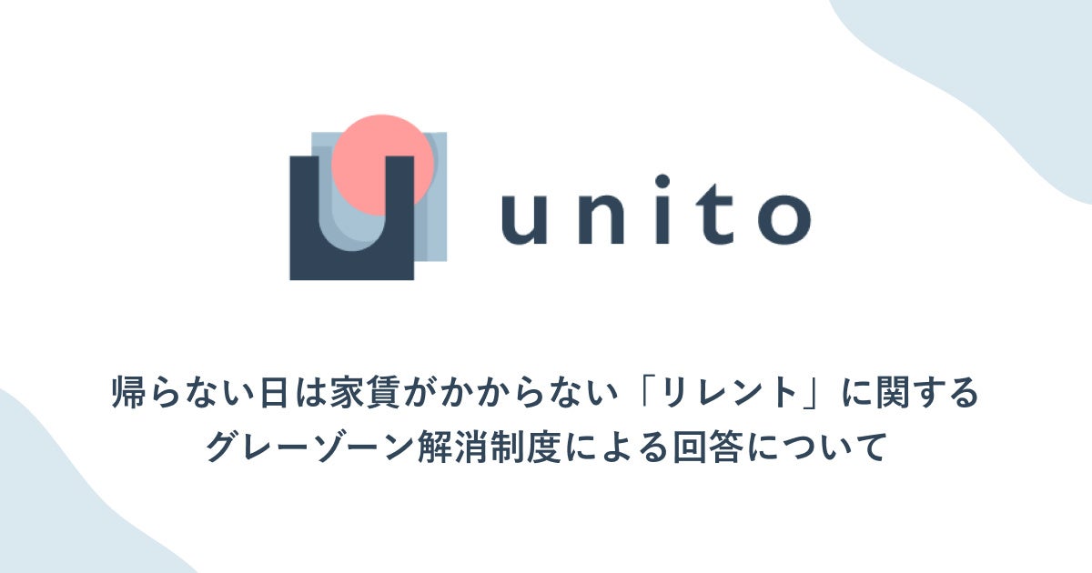 帰らない日は家賃がかからない仕組み「リレント」について利用者はunitoとの契約のみで旅館業を営まずに「リレント」を行えるとしてグレーゾーン解消制度の回答を受領しました