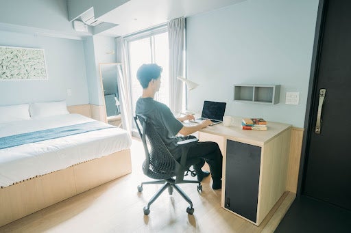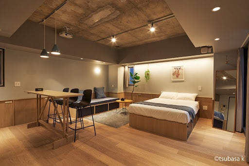 なお、居住者が帰らない日は、居住者の所有物は鍵付き収納に保管し、運営スタッフが清掃を行った上で、宿泊者に貸し出しを行うため、一般的な宿泊施設と同様に宿泊することができます。また、宿泊者の利用後は、もう一度清掃を実施して居住者に返却します。宿泊者の募集はユニットが行い、宿泊の有無にかかわらず、リレントした日の家賃は減額されます。