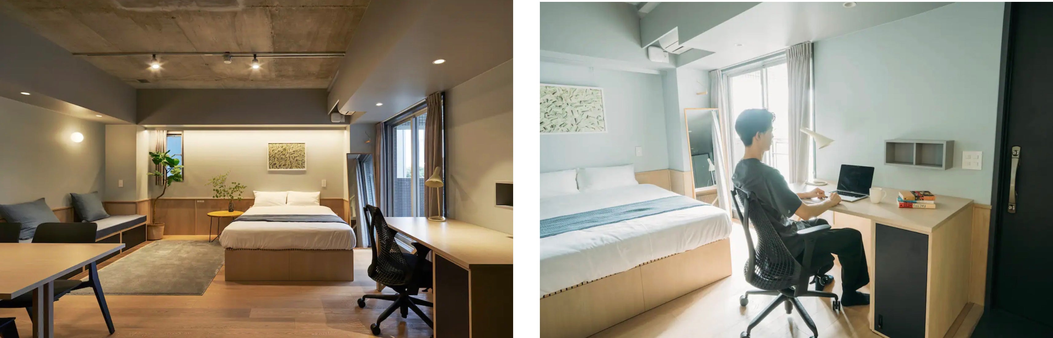 2023年3月に住居一体型オフィス「Co-rent 代田橋」を開業しました。京王電鉄株式会社が所有する戸建物件をリレントに最適化した内装にリフォームを行い、またリレントのシステムを導入し、家賃も間取りも自分に合わせて調節できるフレックスなホテルレジデンスが誕生しました。