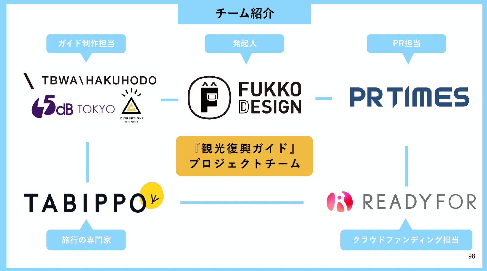 一般社団法人FUKKO DESIGNは、「⺠間ビジネスの力を結集して新たな”復興”をつくる」を活動テーマに、平時のときから行政、⺠間企業、メディアとのネットワークを構築し、有事の時にすぐにサポートする体制をつくるほか、有事の際の被災地に関する情報発信の支援、復興タイミングにおける地域の魅力発信、企業のマッチングサポート支援などをトータルにデザインしていく団体として活動しています。https://fukko-design.jp/