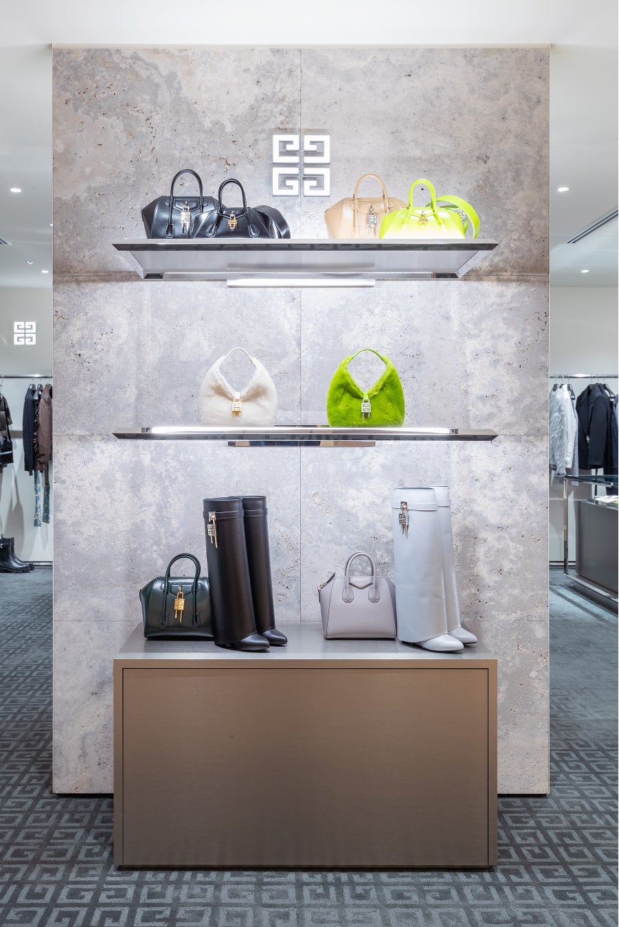 オープンを記念して、新作バッグ『アンティゴナ ストレッチ』のシトラスグリーンカラーを数量限定販売。そのほかにも、ラグジュアリーなバッグや、実用的なスモールレザーグッズ、ジェンダーレスで着用できるジュエリーなど、ホリデーギフトにもふさわしいアイテムを豊富に取り揃えています。