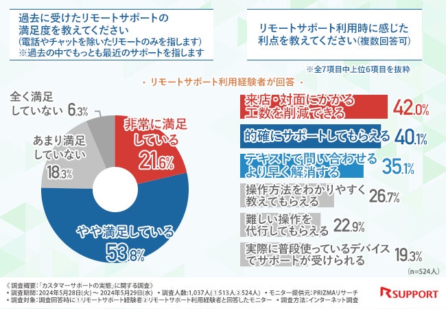 リモートサポートに時間的なメリットや、効率のよさを感じている方が多いことが判明しました。