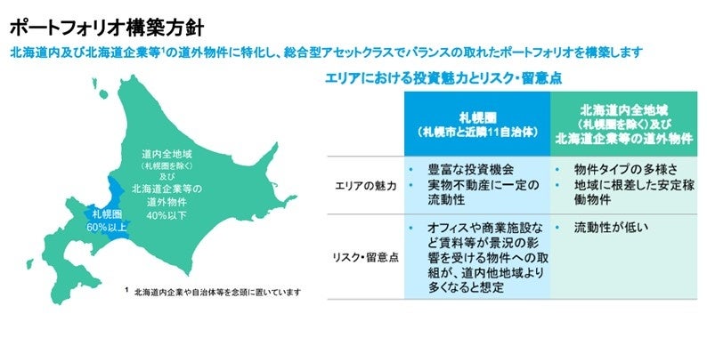 投資法人の事業運営に関して、連携・協力することにより、北海道内のまちづくりの促進・資産の有効活用、地域経済の活性化に貢献する。