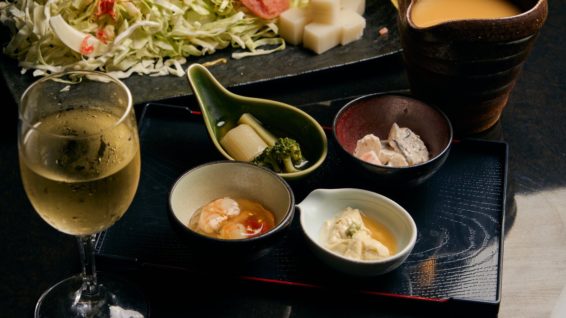 キャベツを使わずに素材や出汁の旨みを味わうもんじゃ焼きは、今までのもんじゃ焼きのイメージを覆すこと間違いなし。新宿歌舞伎町にありながらも喧噪を忘れさせる隠れ家空間で、デートや接待にもお使いいただけます。