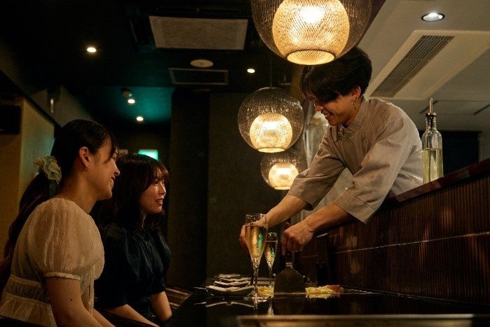 席は仕切りを付けて他のグループの視線を気にせず過ごせるプライベートな造りで、個室も1部屋配備。デートや記念日、女子会、会食などのシーンでお使いいただけます。